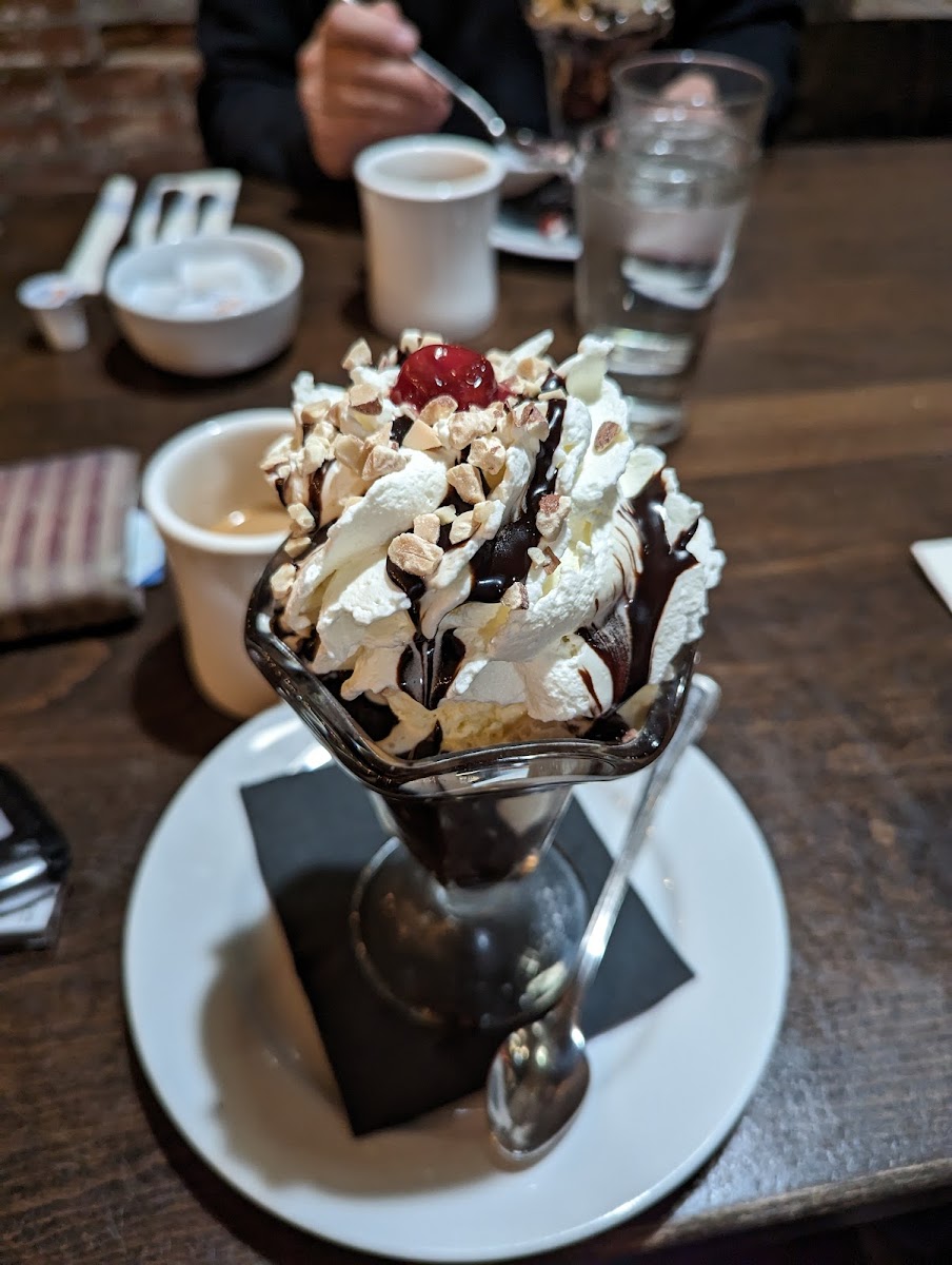 This spot feels fitting for those who appreciate familiar favorites done well, especially if you’re in the mood for things like a solid burger (the “Californian Burger” comes highly approachable), satisfying sides like poutine, or brunch-style plates such as chicken and waffles and expertly crafted corned beef hash. Dessert also carries a draw, with crowd-pleasers such as the bittersweet hot fudge sundae and banana split, which offer a nostalgic finish to the meal.